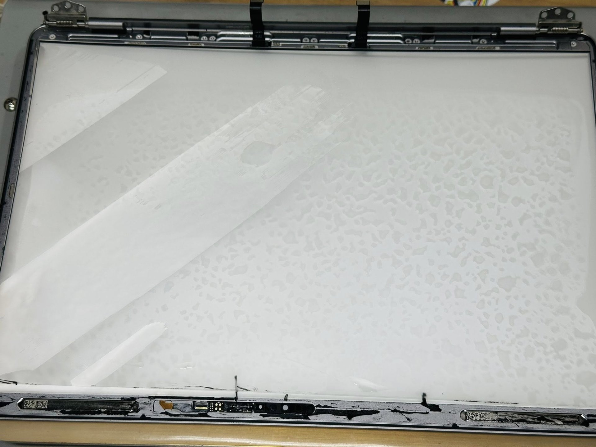 น้ำหกใส่ น้ำเข้าจอ MacBook ทำให้ภายในจอมีคราบน้ำหรือความชื้น สามารถแก้ไขได้โดยการ "เปลี่ยนชั้นฟิล์ม" ภายในจอโดยไม่จำเป็นต้องเปลี่ยนจอใหม่แต่อย่างใด เป็นการเซฟค่าใช้จ่ายได้อีกวิธีหนึ่ง แต่วิธีการนี้มีความเสี่ยงเป็นอย่างมากควรทำโดยช่างผู้เชี่ยวชาญ