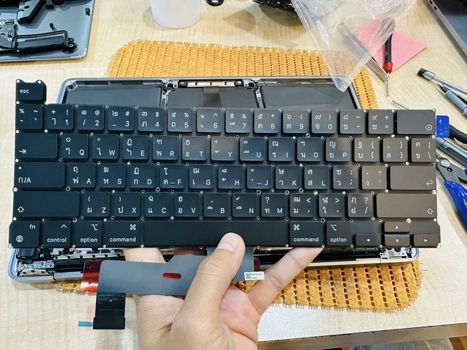 เปลี่ยนคีบอร์ด MacBook Air M1, A2337 เสียจากการโดนน้ำ
