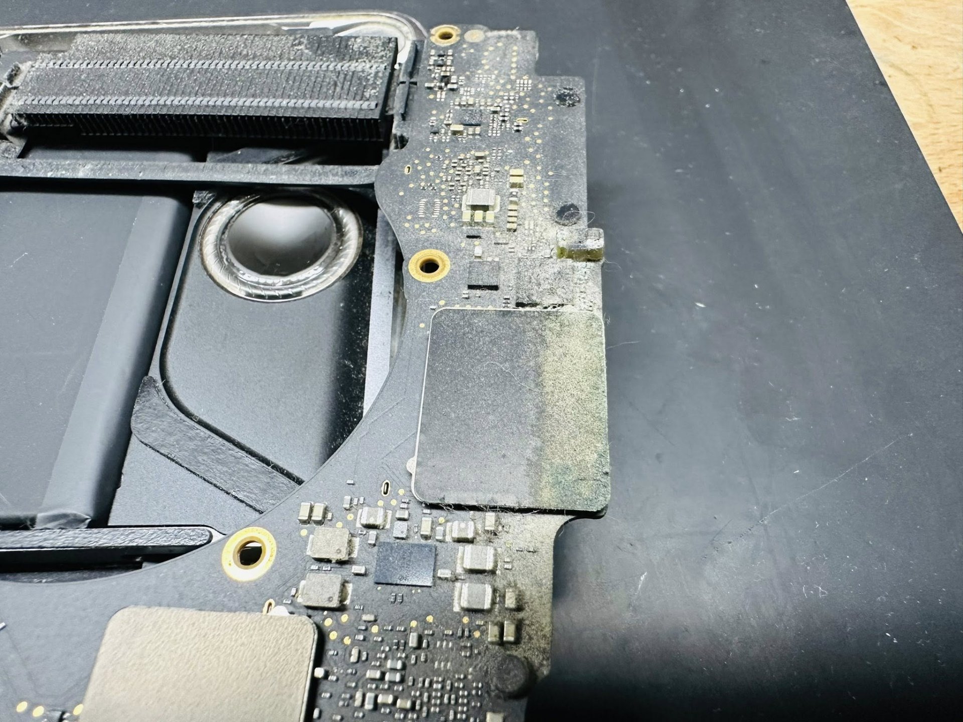 Macbook Pro เปิดไม่ติด เพราะมีฝุ่นเข้าและมีความชื้นในบอร์ด